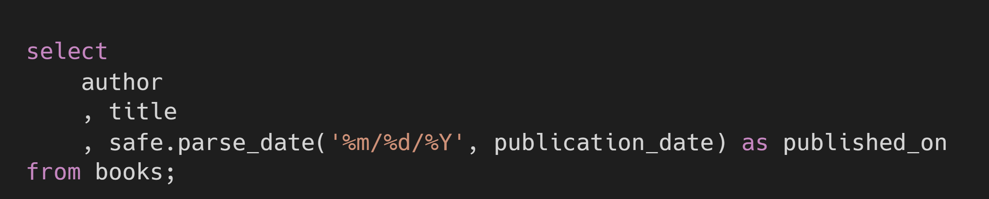 This section describes handy SQL features and functions in BigQuery. This article covers the `SAFE.` prefix to make your queries more error-proof.